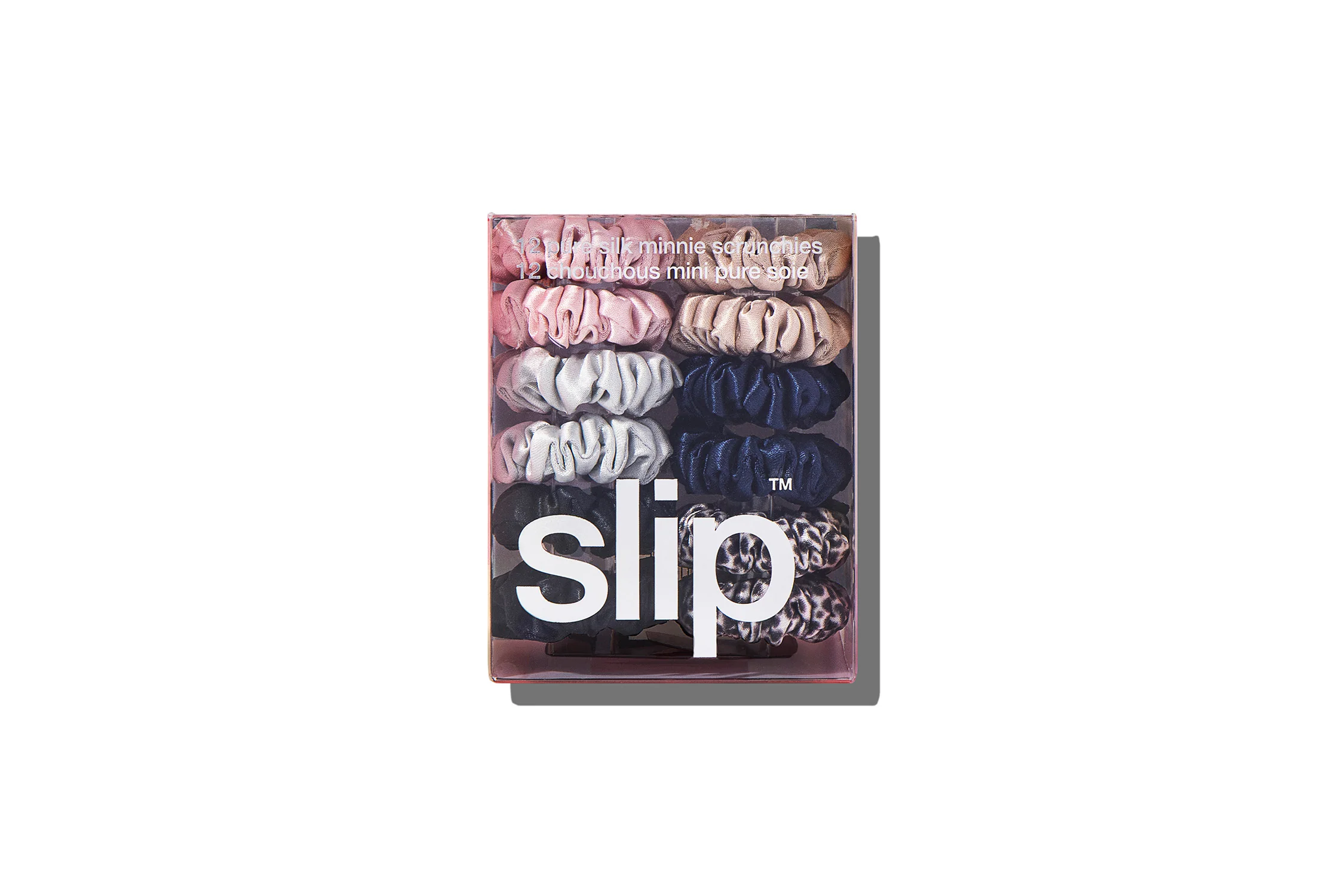 - This set includes: 2 x pink, 2 x caramel, 2 x silver, 2 x navy, 2 x leopard, 2 x black minnie slipsilk™ scrunchies.